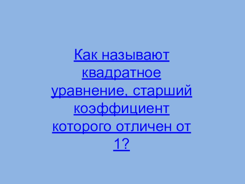 Слайд 5Как называют квадратное уравнение, старший коэффициент которого отличен от 1?