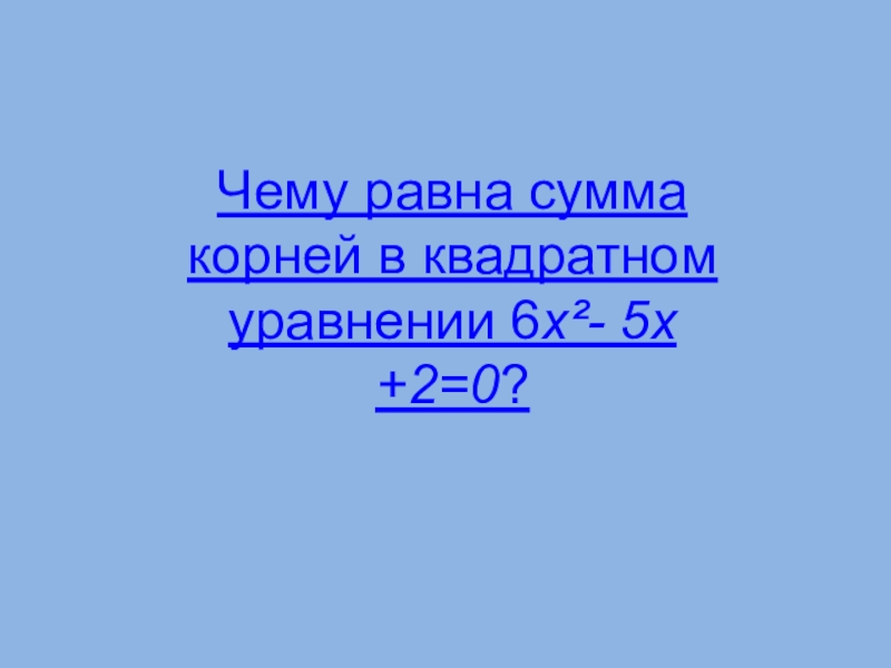 Слайд 12Чему равна сумма корней в квадратном уравнении 6x²- 5x +2=0?