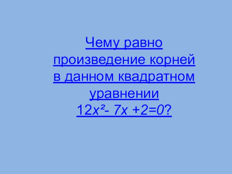Слайд 13Чему равно произведение корней в данном квадратном уравнении