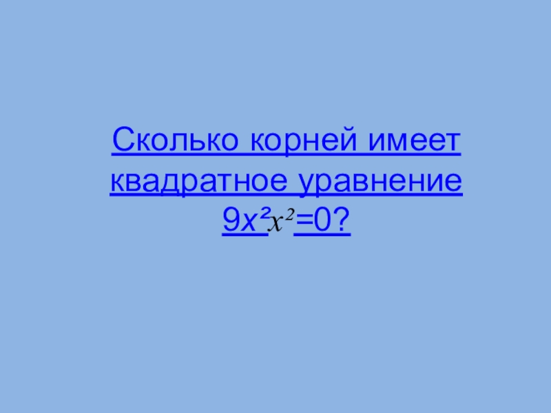 Слайд 25Сколько корней имеет квадратное уравнение 9x²x²=0?