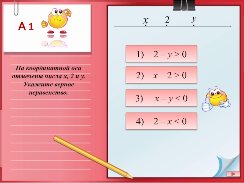 1) 2 – y > 0