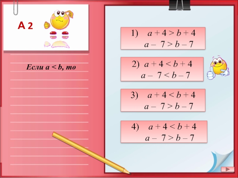 4) a + 4 < b + 4