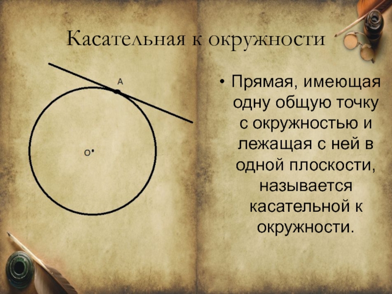 Слайд 34Касательная к окружности