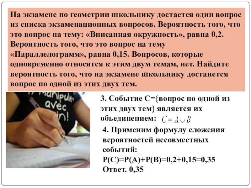 Р(С)=Р(А)+Р(В)=0,2+0,15=0,35
