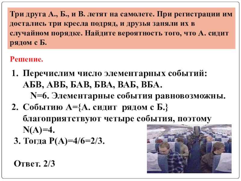 Событию А={А. сидит рядом с Б.} благоприятствуют четыре события, поэтому N(А)=4.