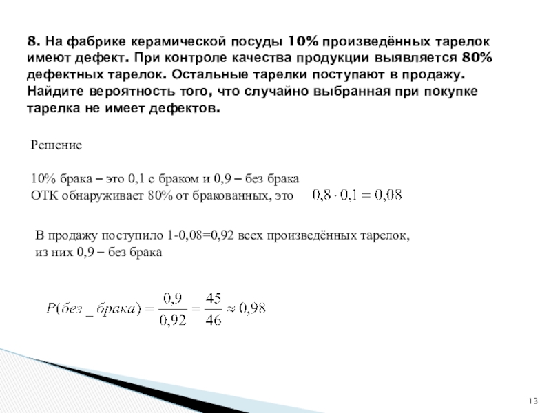 В продажу поступило 1-0,08=0,92 всех произведённых тарелок,