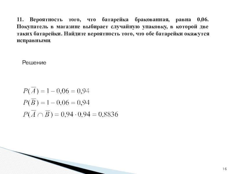 10% брака – это 0,1 с браком и 0,9 – без брака