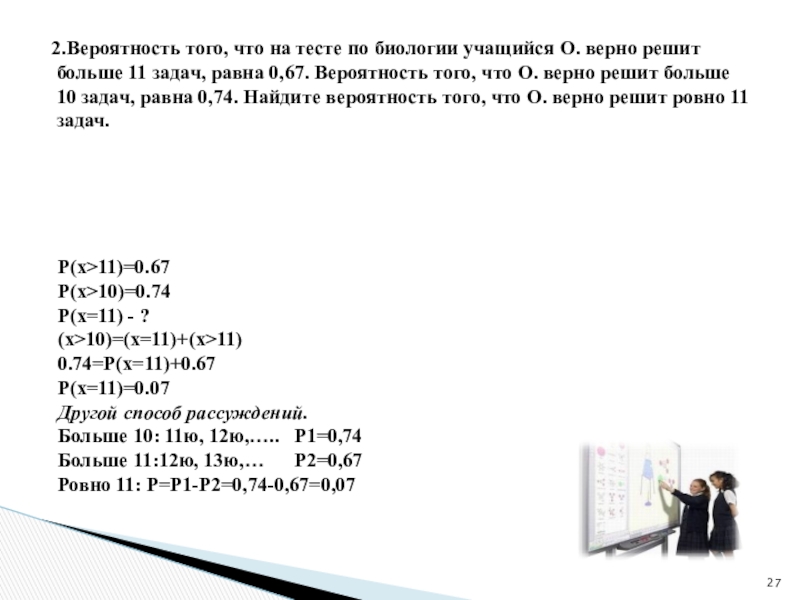 Ровно 11: Р=Р1-Р2=0,74-0,67=0,07