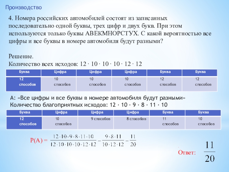 А: «Все цифры и все буквы в номере автомобиля будут разными»
