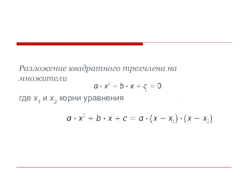 Слайд 14Разложение квадратного трехчлена на множители ,