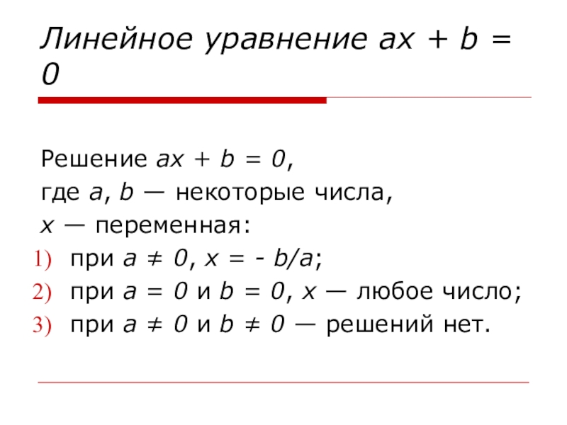 при a ≠ 0 и b ≠ 0 — решений нет.