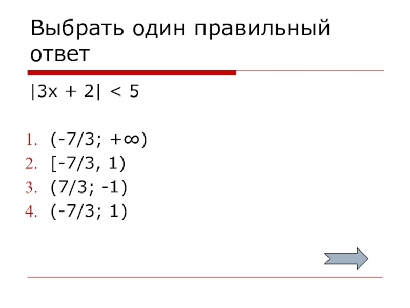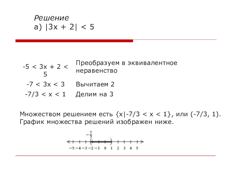 Слайд 42Множеством решением есть {x|-7/3 < x < 1}, или (-7/3, 1).