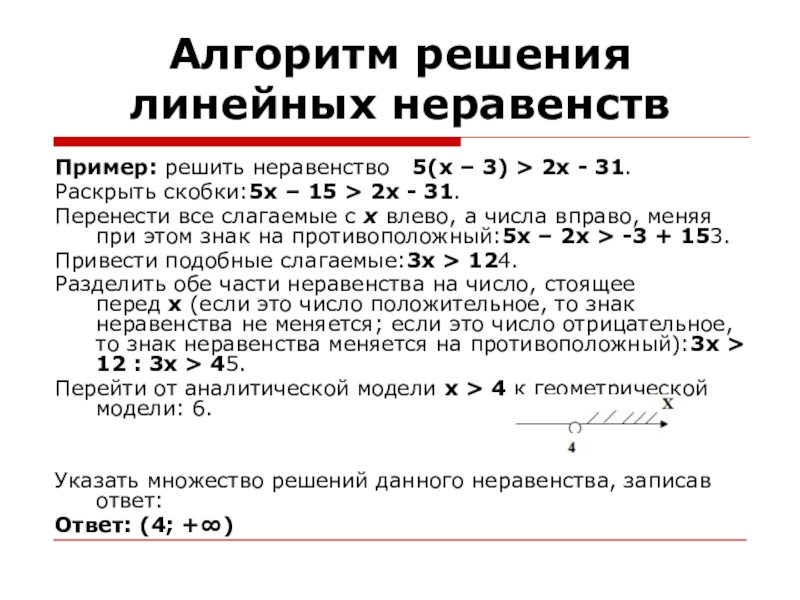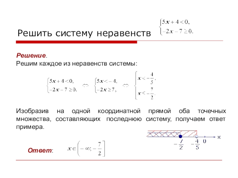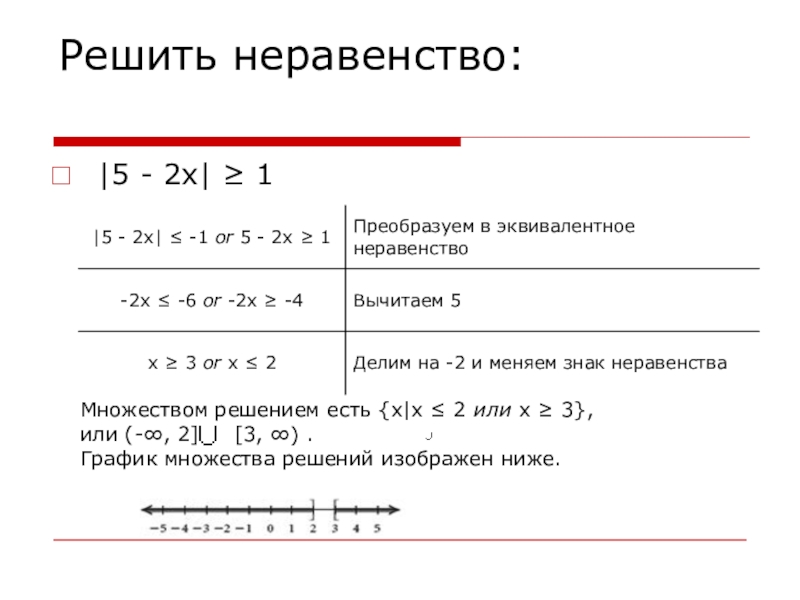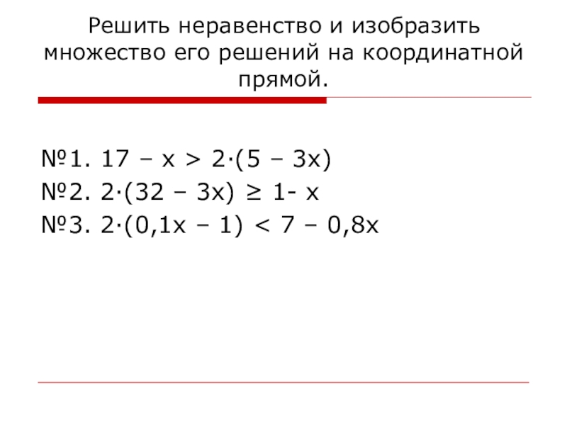 Слайд 8Решить неравенство и изобразить множество его решений на координатной прямой.