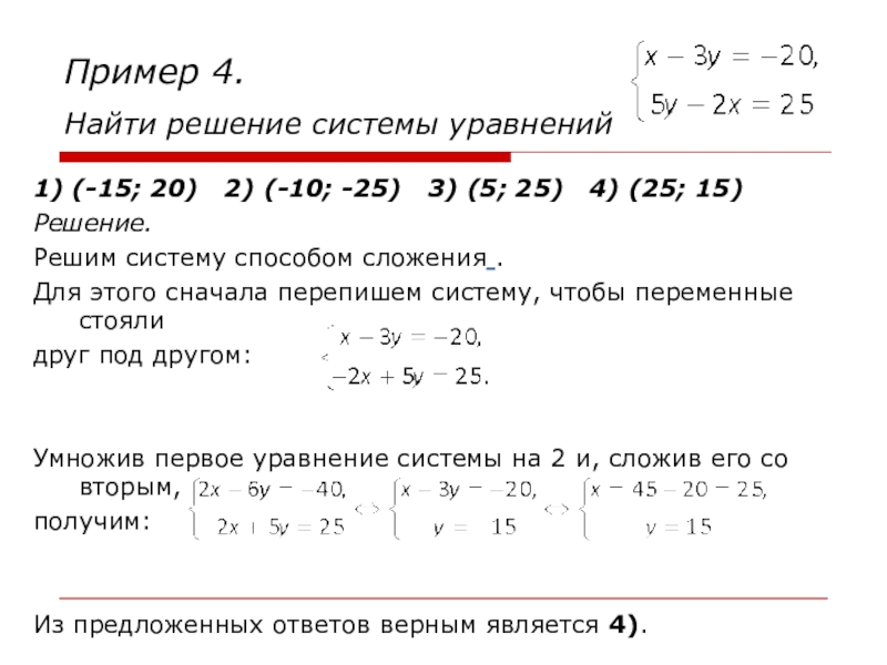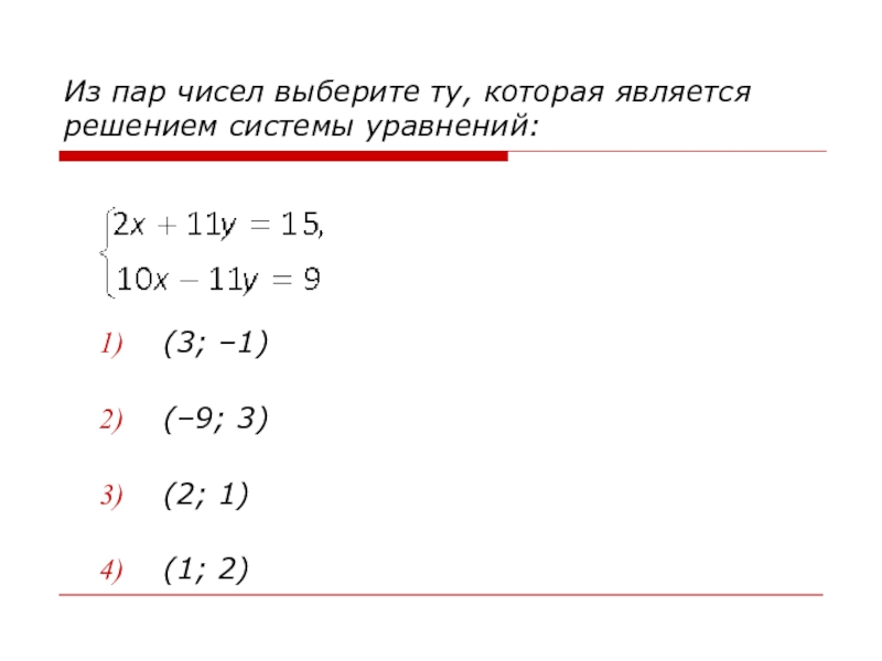 Из пар чисел выберите ту, которая является решением системы уравнений: