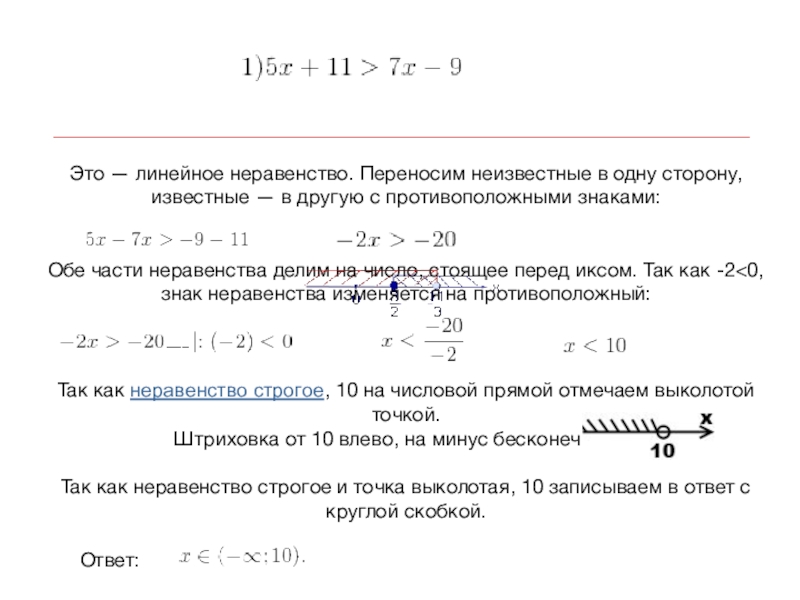 Слайд 10Это — линейное неравенство. Неизвестные — в одну сторону, известные —