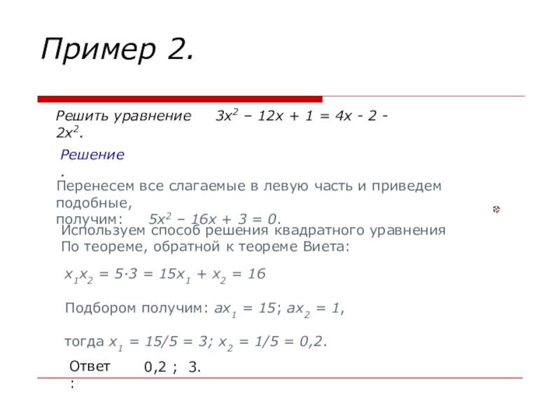 тогда х1 = 15/5 = 3; х2 = 1/5 = 0,2.