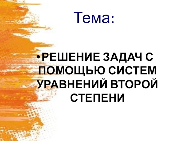 формировать умение решать задач с помощью систем уравнений второй степени,