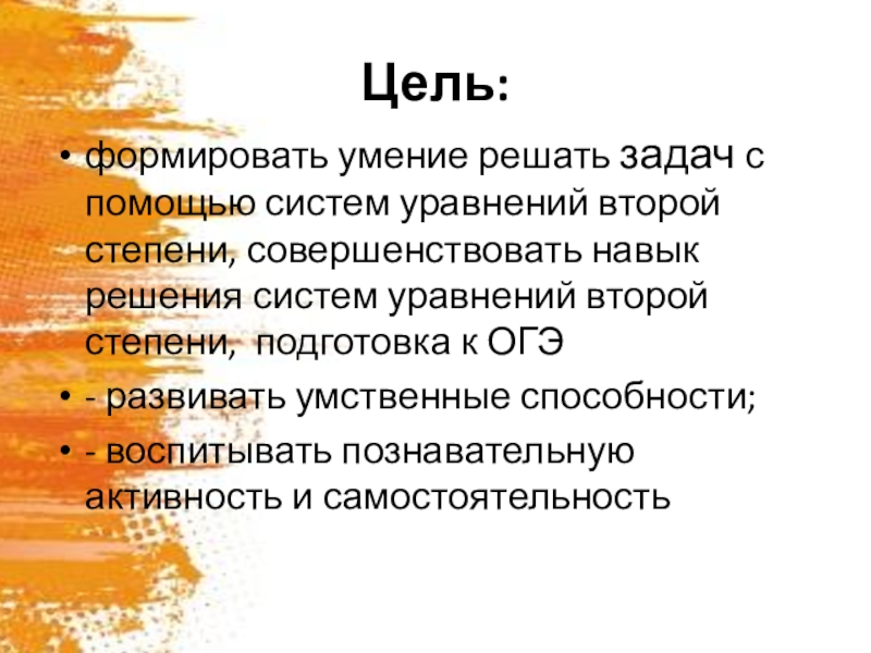 совершенствовать навык решения систем уравнений второй степени, подготовка к ОГЭ