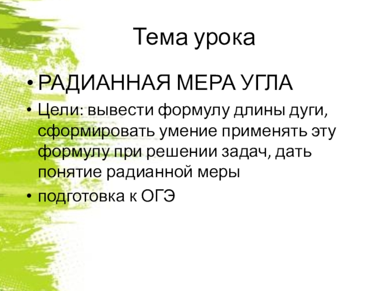Цели: вывести формулу длины дуги, сформировать умение применять
