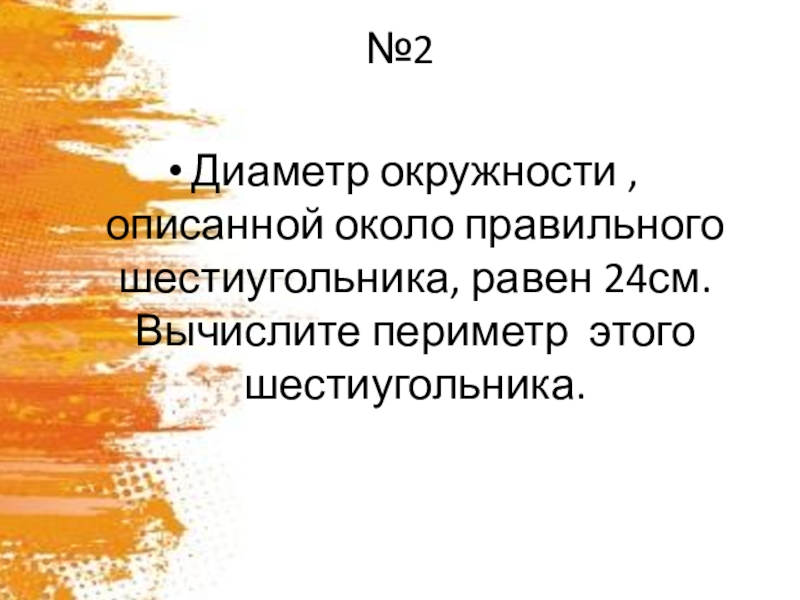 Диаметр окружности , описанной около правильного шестиугольника, равен 24см. Вычислите