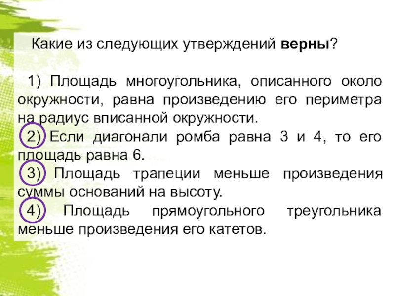 2) Если диагонали ромба равна 3 и 4, то его площадь равна 6.