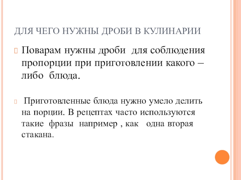Слайд 5ДЛЯ ЧЕГО НУЖНЫ ДРОБИ В КУЛИНАРИИ