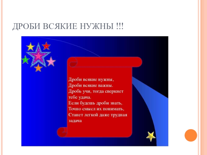Слайд 4ДРОБИ ВСЯКИЕ НУЖНЫ !!!