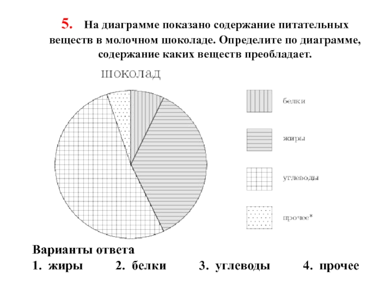 1. жиры 2. белки 3. углеводы 4. прочее