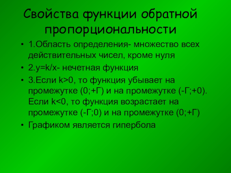 1. Если х=0, то у=0. График функции проходит через начало координат.