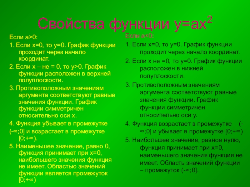 3. Противоположным значениям аргумента соответствуют равные значения функции. График функции симметричен относительно оси у.