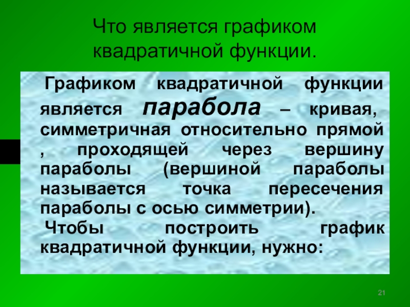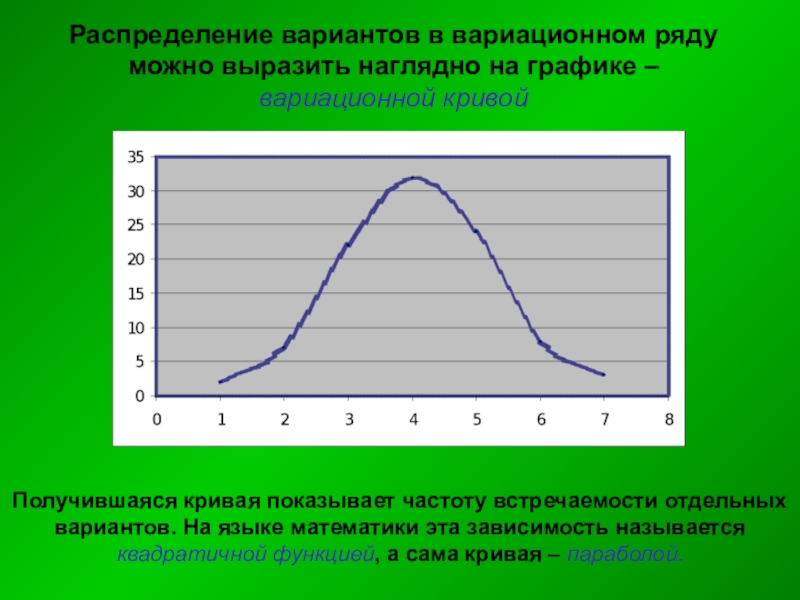 Получившаяся кривая показывает частоту встречаемости отдельных вариантов. На языке математики эта зависимость называется квадратичной функцией, а сама кривая – параболой.