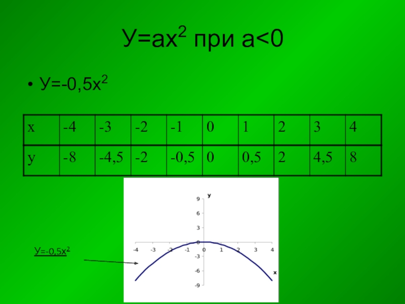 5. Наибольшее значение, равное нулю, функция принимает при х=0, наименьшего значения функция не имеет. Область значений функции – промежуток (-∞;0].