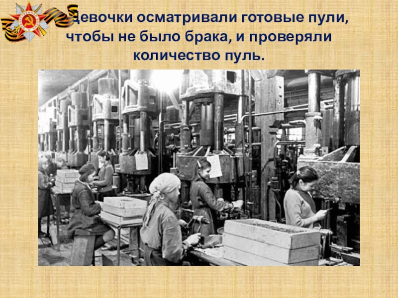 Девочки осматривали готовые пули, чтобы не было брака, и проверяли количество
