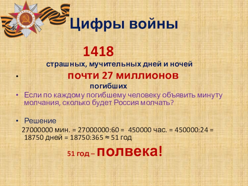 Великая Отечественная Война началась 22 июня 1941 года. Узнать, сколько