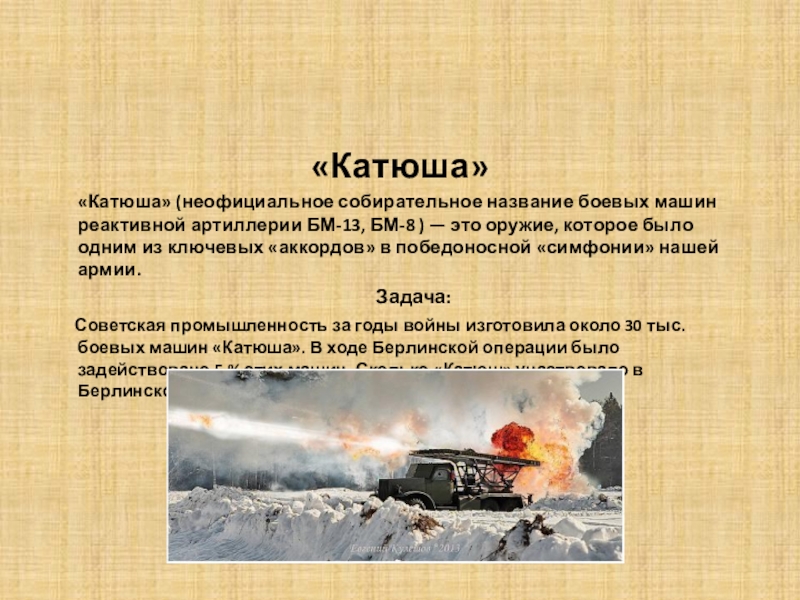 «Катюша» (неофициальное собирательное название боевых машин реактивной