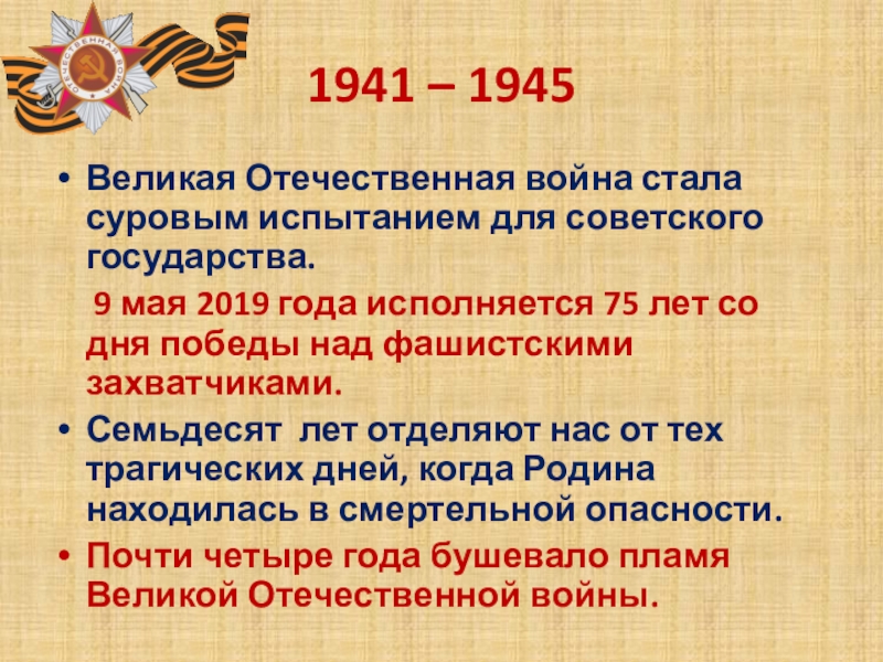 9 мая 2019 года исполняется 75 лет со дня победы над фашистскими захватчиками.