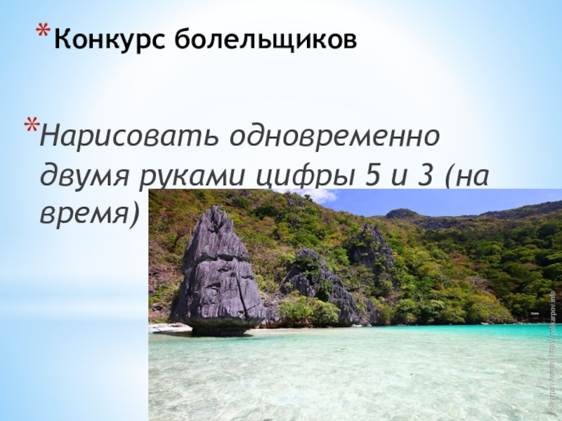 Конкурс болельщиковНарисовать одновременно двумя руками цифры 5 и 3 (на время)