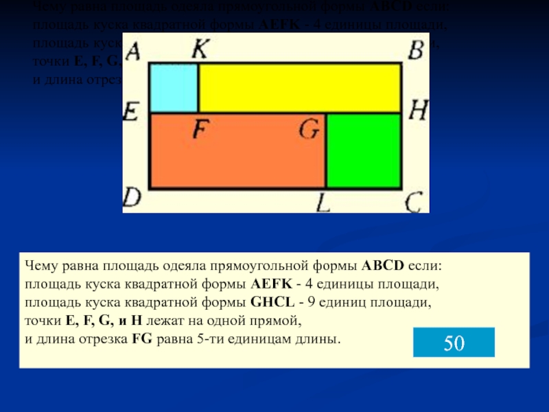 Чему равна площадь одеяла прямоугольной формы ABCD если: