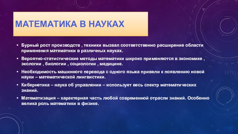 Кибернетика – наука об управлении – использует весь спектр математических знаний.