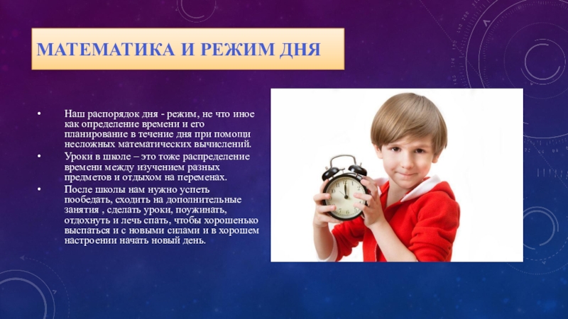 как определение времени и его планирование в течение дня при помощи несложных математических вычислений.