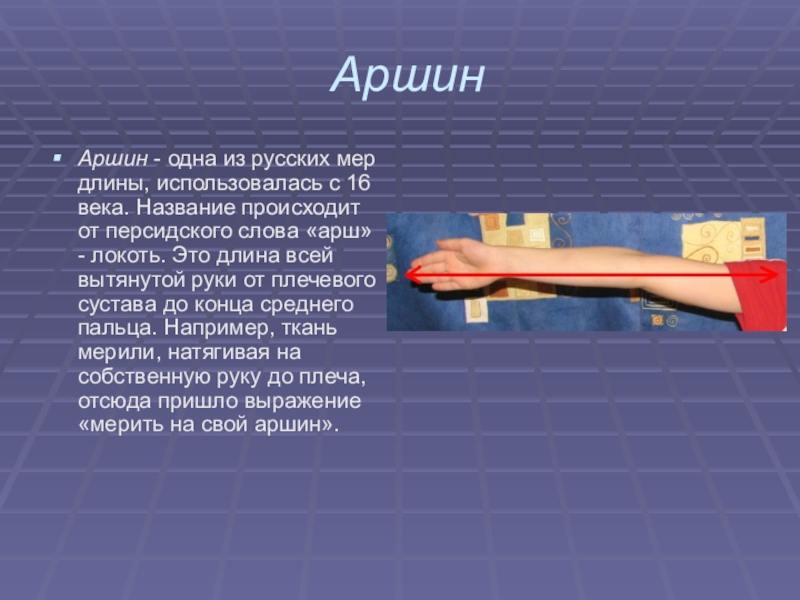 Косая сажень - расстояние от первого пальца левой стопы до конца среднего пальца поднятой вверх правой руки.