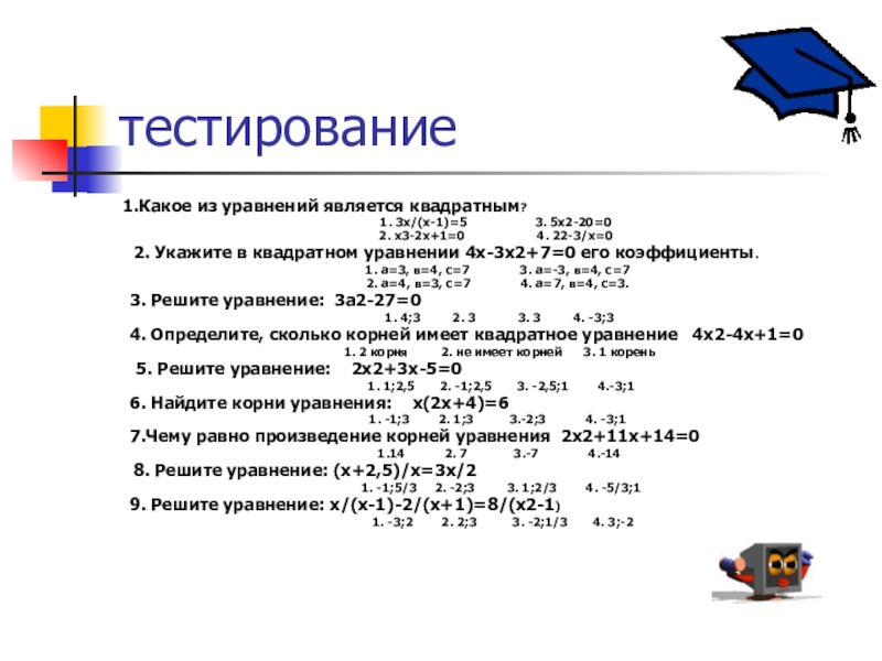 2. Укажите в квадратном уравнении 4х-3х2+7=0 его коэффициенты.