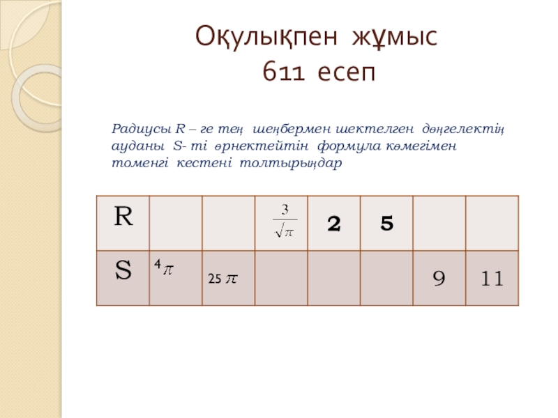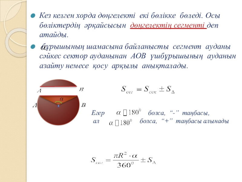 Егер радиан есебімен берілсе,онда сектор ауданы