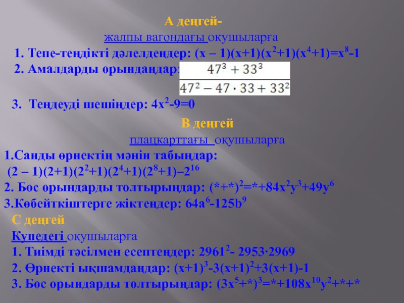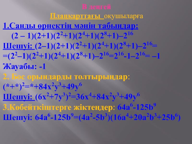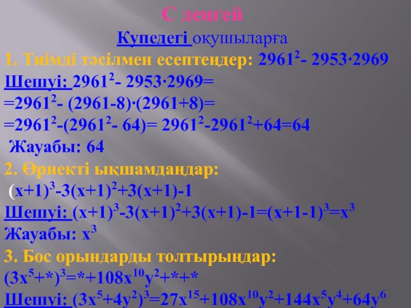 2. Өрнекті ықшамдаңдар: (х+1)3-3(х+1)2+3(х+1)-1