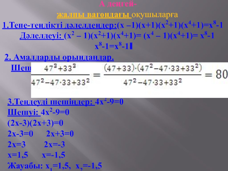 3. Теңдеуді шешіңдер: 4х2-9=0