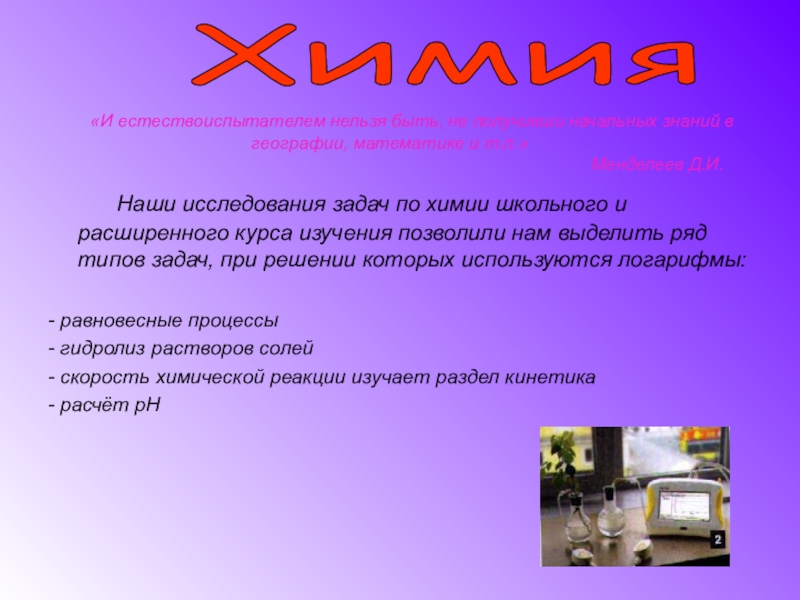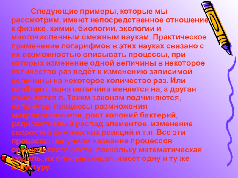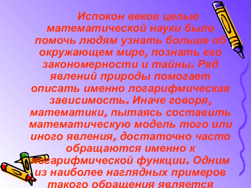 Тема: «Практическое применение логарифмической