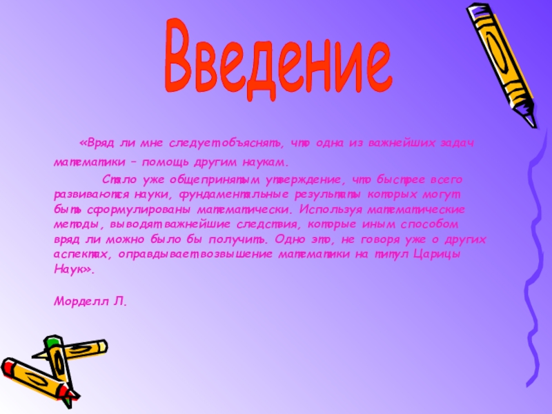 «Математические методы становятся не только методами, которые используются в механике, физике, но общими методами для всей науки в целом»