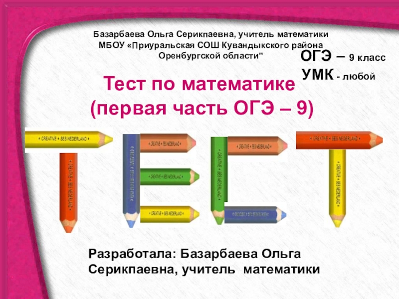 Разработала: Базарбаева Ольга Серикпаевна, учитель математики