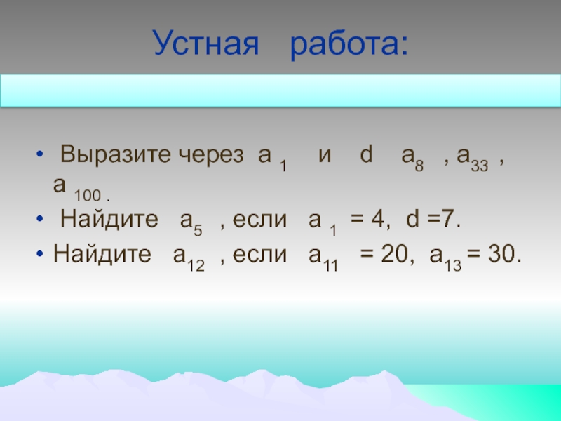 Устная  работа: Выразите через а 1   и  d  а8  , а33