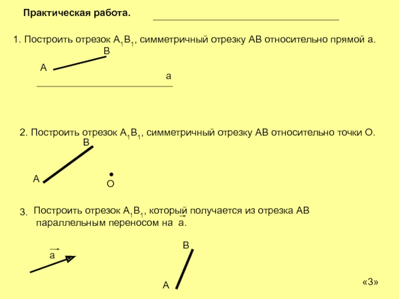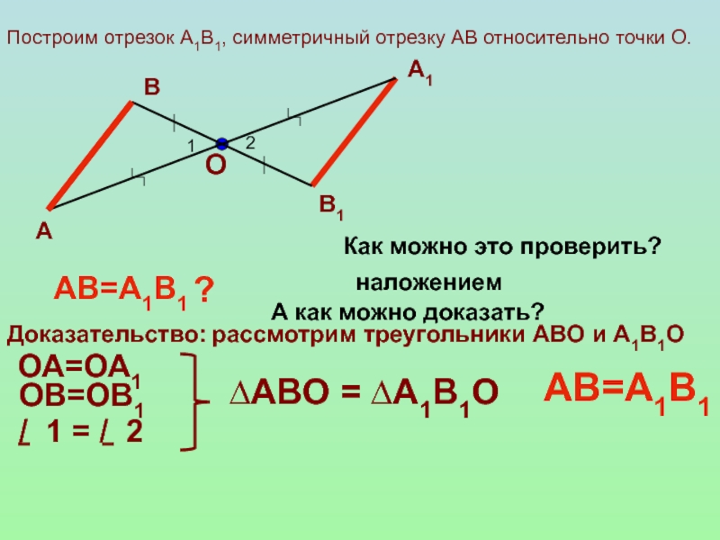 2. Построить отрезок А1В1, симметричный отрезку АВ относительно точки О.